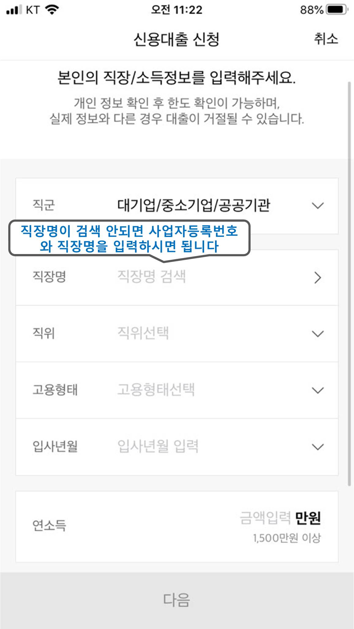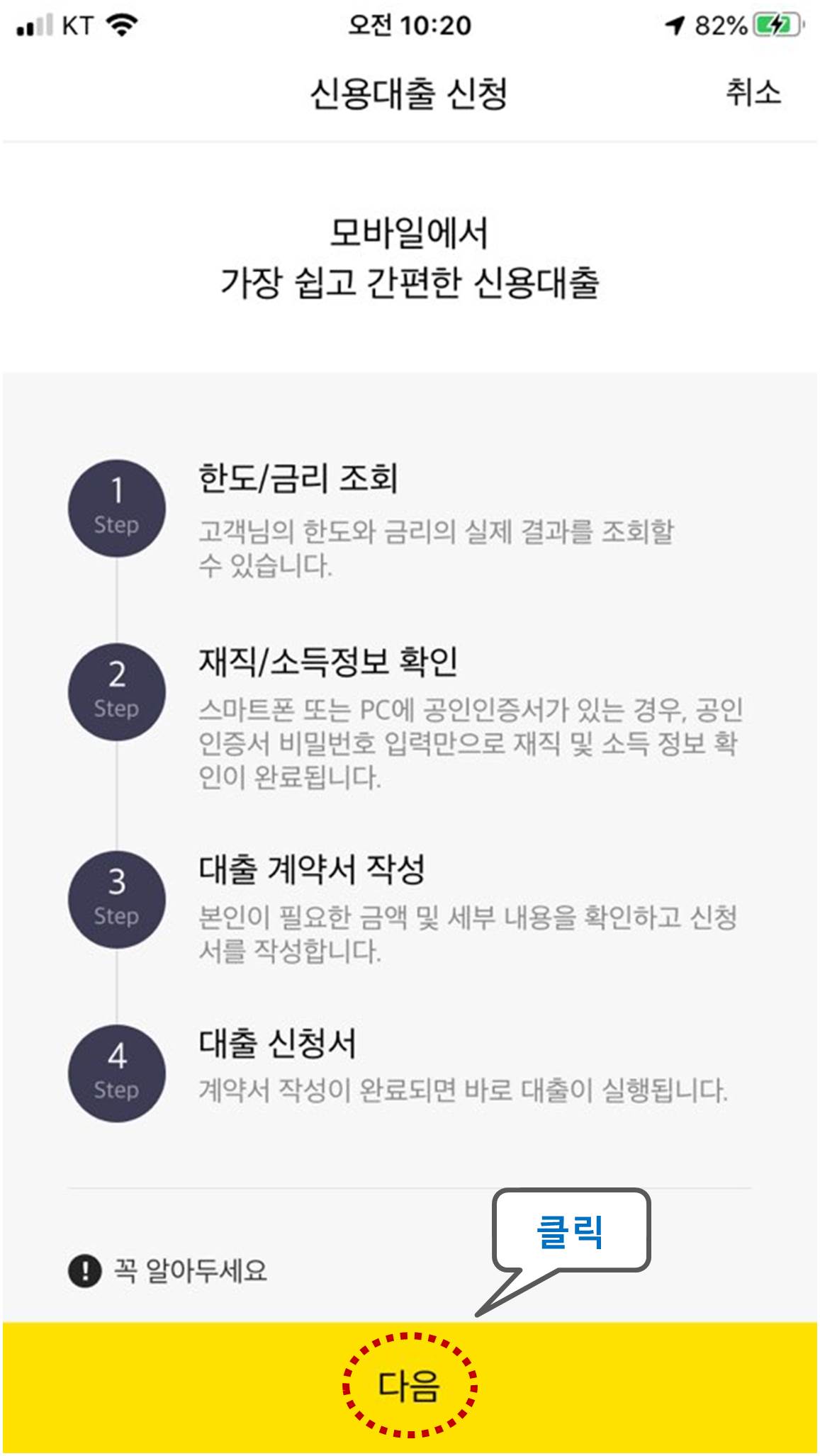 #4. 신용대출의 절차가 나와있고 아래 "다음" 클릭