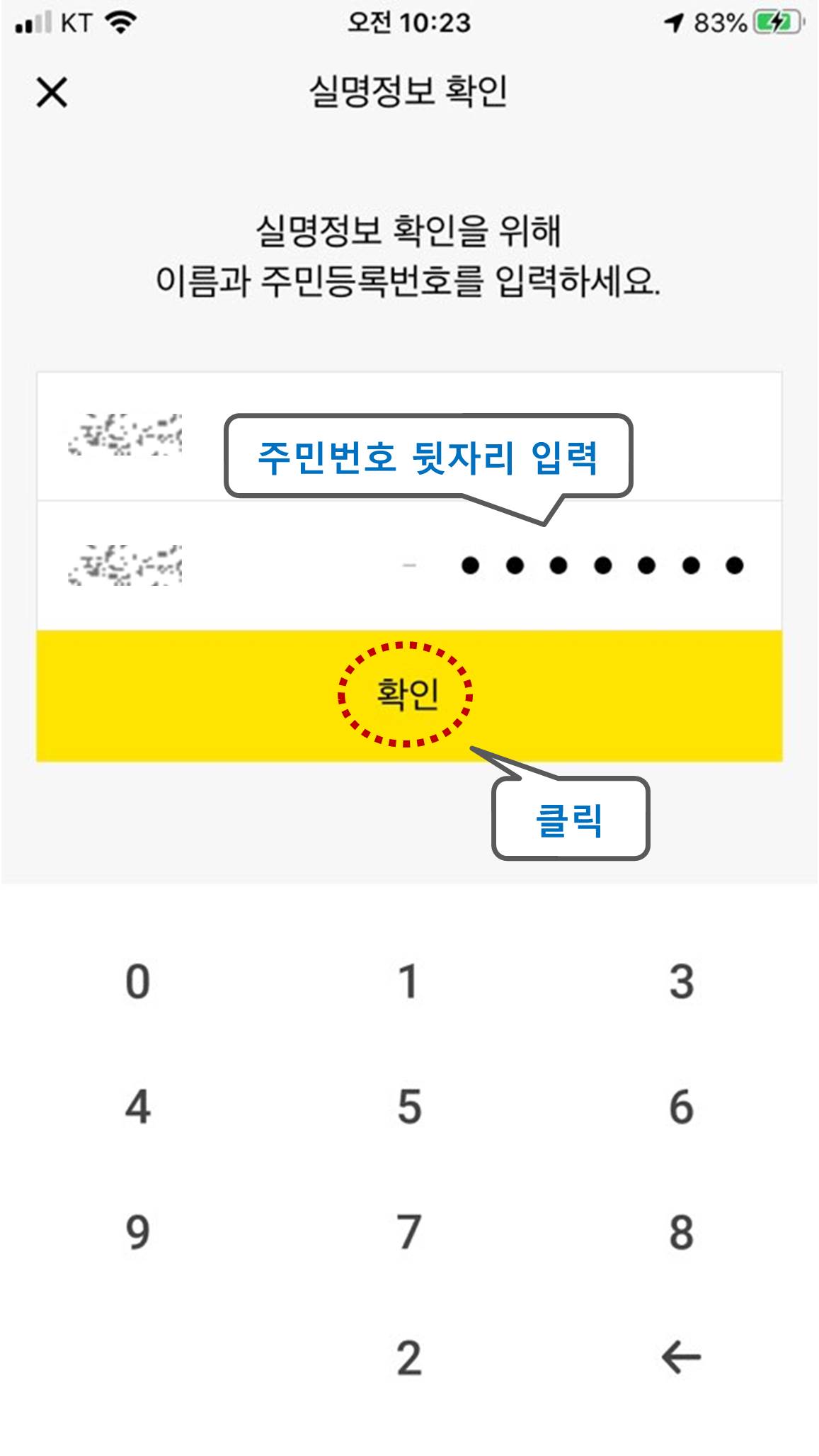 #6. 주민등록번호(뒷자리) 입력후 "확인"