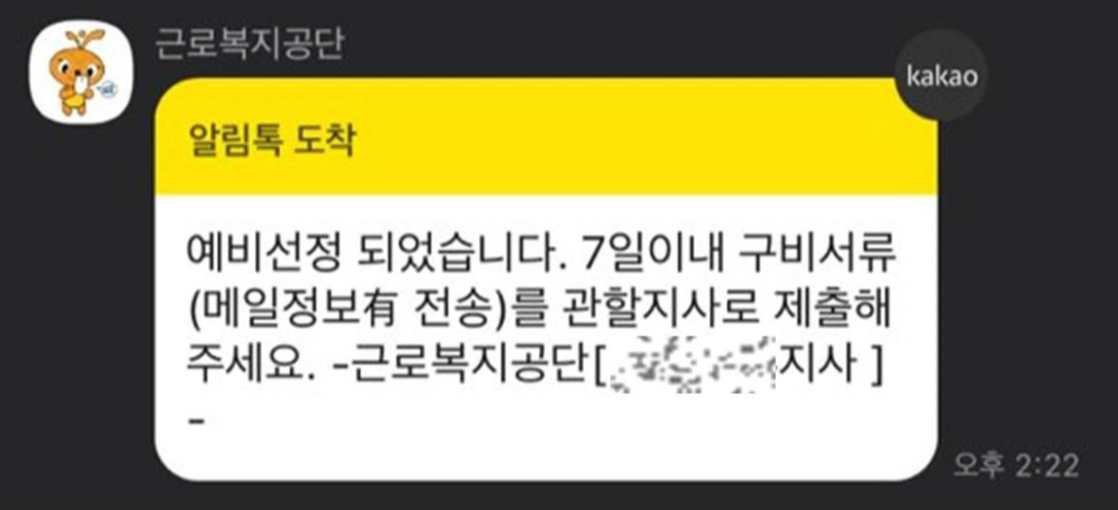 ★ 절차에 따라 진행상황이 근로복지공단에서 카카오톡이 옵니다.